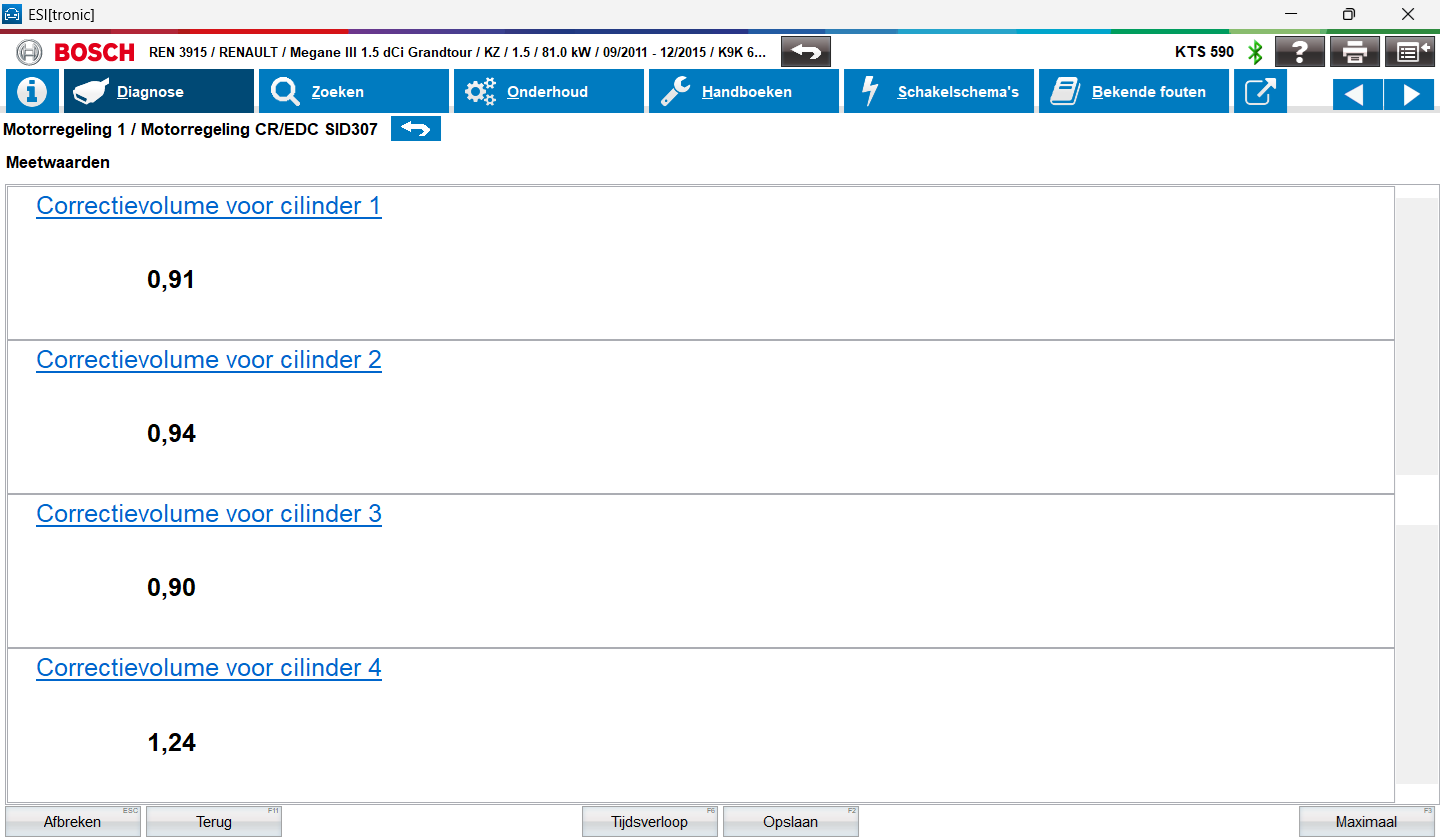 - Injector cilinder 1/2/3/4: correctiewaarde