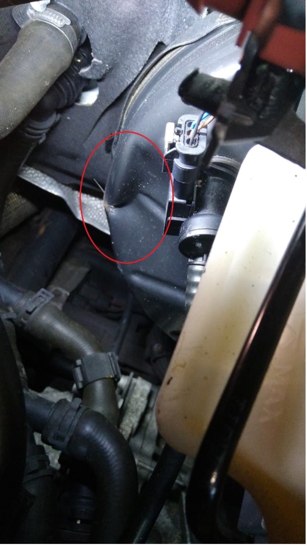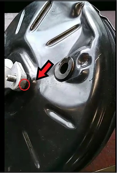 Om beter zicht op deze twee onderdelen te krijgen, demonteert de autotechnicus van het autobedrijf eerst een aantal andere onderdelen. Daarbij wordt een afwijking ontdekt. Er zit een deuk in de rembekrachtiger, op een plek waar dat niet hoort.